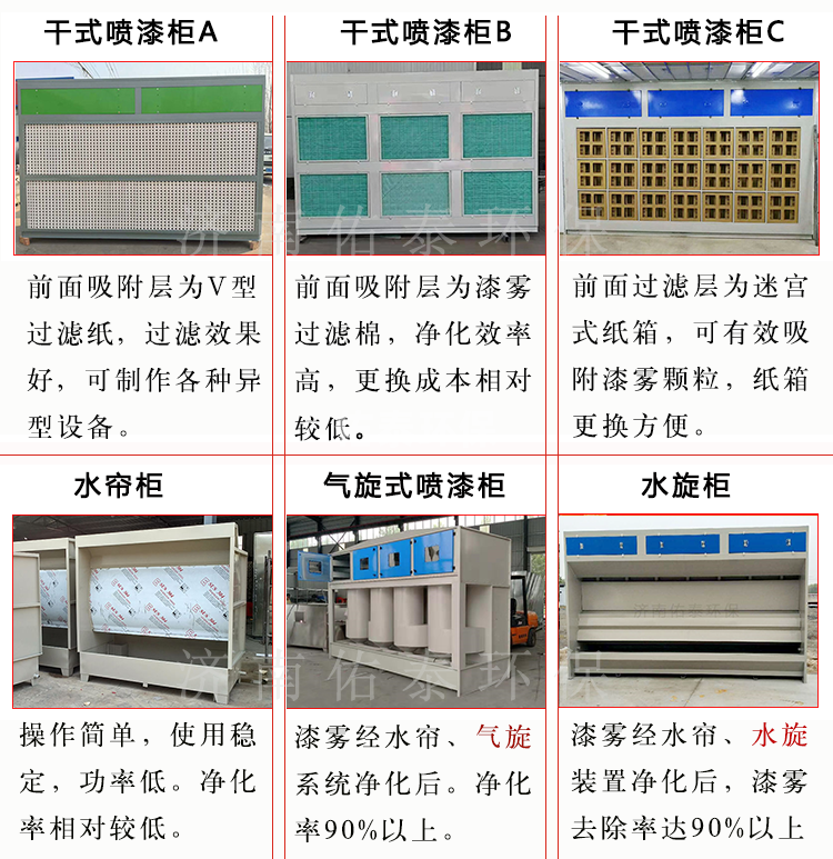 公司的環(huán)保設備有VOCs廢氣處理設備、工業(yè)粉塵處理設備兩大類。廢氣治理環(huán)保設備有催化燃燒設備pp噴淋塔、活性炭吸附箱、移動伸縮噴漆房、氣旋塔、水簾噴漆柜、漆水分離一體機等環(huán)保設備。粉塵處理設備包括濾筒式脈沖除塵器、布袋除塵器、打磨吸塵工作水簾式打磨臺等設備。我們可以根據企業(yè)的實際情況定制合適的環(huán)保設備。歡迎您來電咨詢15665879292,或者添加網頁下面微信,把您的廢氣治理需求告訴我們,我們?yōu)槟峁┰O備的詳細參數(shù)、配置及價格,為你提供相關設備的案例圖片或視頻,同時可以給您發(fā)公司車間正在加工設備的視頻或圖片。