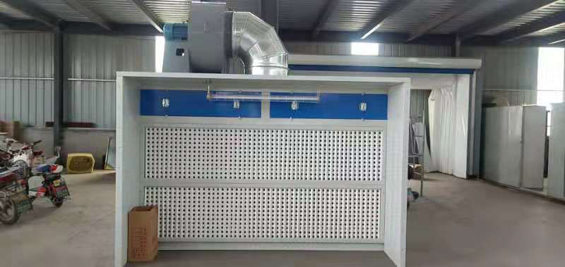 干式噴漆柜主要是把噴工件時多余的漆霧經(jīng)過風機吸力排出室外,噴漆作業(yè)時利用風機的吸力 ,把噴向工件上多余的漆霧通過過濾紙,過濾棉二次凈化后,經(jīng)漆氣分離裝置,進入活性炭過濾層過濾,將凈化后的氣體排出室外。廢漆去除達到80以上。漆霧與氣混合隨風,經(jīng)過濾紙,過濾棉過濾,油漆殘渣浮在上面,揮發(fā)性氣體亦經(jīng)過活性炭過濾,從而保持排出室外的氣體清潔,從而完成漆霧凈化目的。