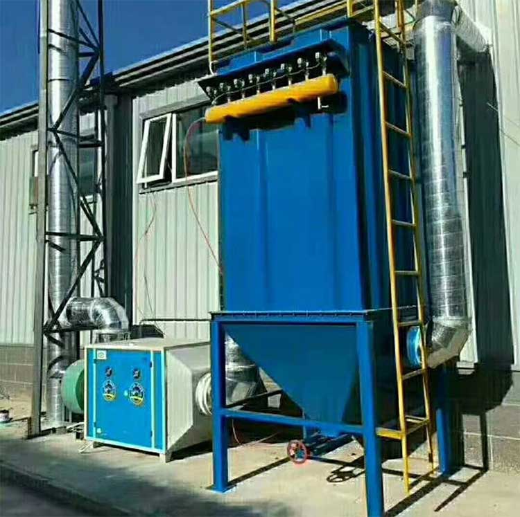 在車間各揚塵點采用吸罩通過吸塵管道進入布袋除塵器,后通過布袋再次收集,經(jīng)過過濾后的凈化氣體通過風機排出。