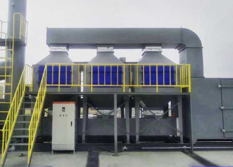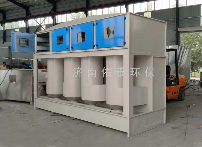 噴槍中噴出的水性漆,絕大部分附著在所噴工件表面,還有一小部分飄散在空氣中,處理VOCs之前必須將漆霧顆粒處理干凈,若漆霧顆粒吸附到活性炭表面,會(huì)導(dǎo)致系統(tǒng)運(yùn)行不暢,活性炭吸附性能降低,及活性炭使用壽命變短等問(wèn)題。
