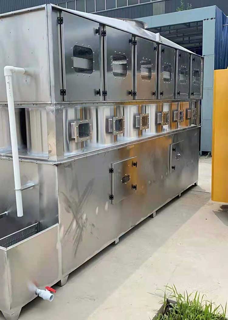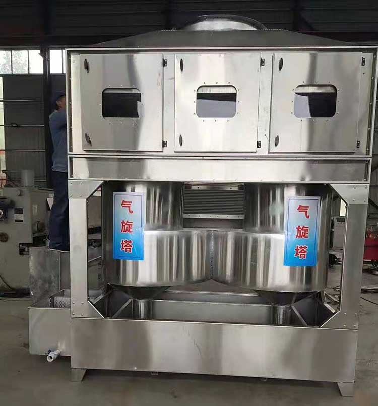 需要處理的含塵廢氣由風(fēng)管引入凈化塔,經(jīng)過旋流塔洗滌桶時(shí),風(fēng)帶加快,帶動(dòng)填料球飛快運(yùn)轉(zhuǎn)。在洗滌桶里,含塵廢氣與水霧充分混合洗滌,中和反應(yīng)(水里補(bǔ)充有酸堿時(shí))廢氣經(jīng)過凈化后,再清除霧層脫水除霧后由風(fēng)機(jī)排入大氣或再進(jìn)入其他凈化設(shè)備(光氧催化、低溫等離子等)。吸收液在塔底輕水泵增壓后在箱頂噴淋霧化而下,***后回流直箱底循環(huán)使用,凈化的廢氣達(dá)到國家排放標(biāo)準(zhǔn)。