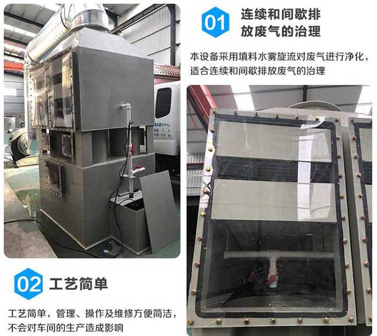 方形旋流凈化塔是普通噴淋塔的升級版,設(shè)計(jì)更加人性化,填料與清理更加方便,可重復(fù)使用,適合于連續(xù)和間歇排放廢氣的治理。工藝簡單,管理、操作及維修更加方便簡潔,不會對車間的生產(chǎn)造成任何影響,同時(shí)酸霧吸收器適用范圍更廣,除霧效果更好。