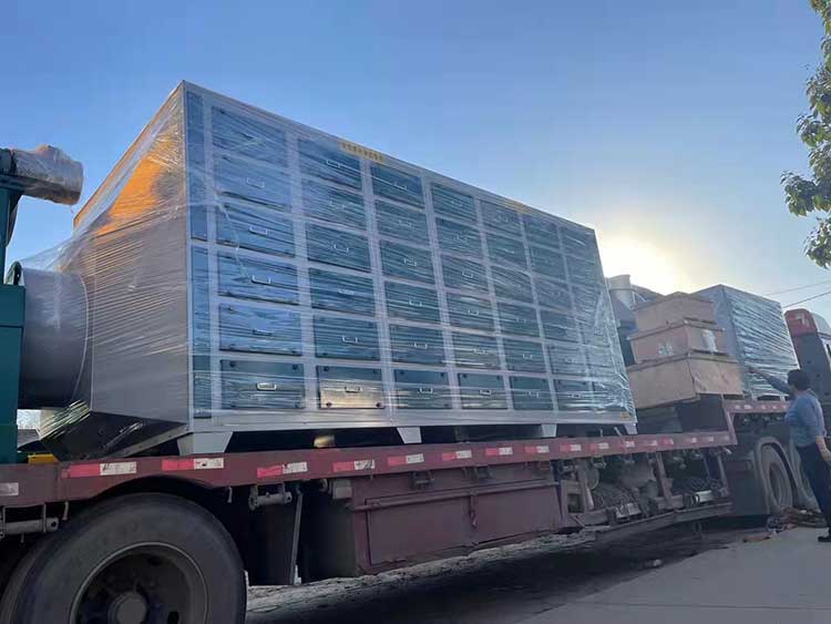 10活性炭環(huán)保箱尺寸:L5.5*W1.5*H2.3(m),2.0mm鍍鋅板制作,外表噴塑。共42個活性炭抽屜,2520塊(L10*W10*H10)活性炭磚。進風口一道玻纖過濾網(wǎng),分上下兩層制作,出風口一道活性炭過濾棉。活性炭碘值400。