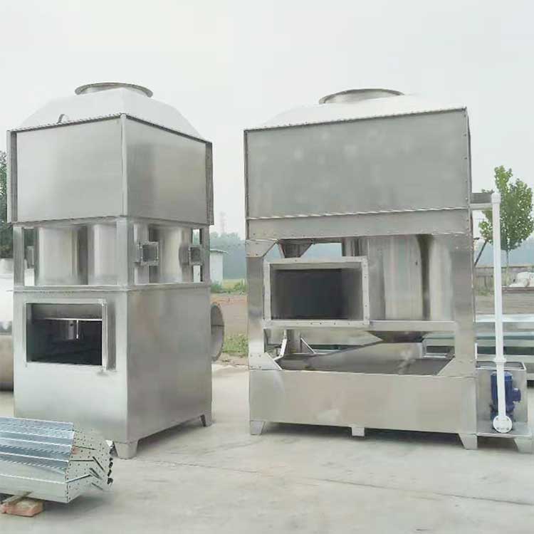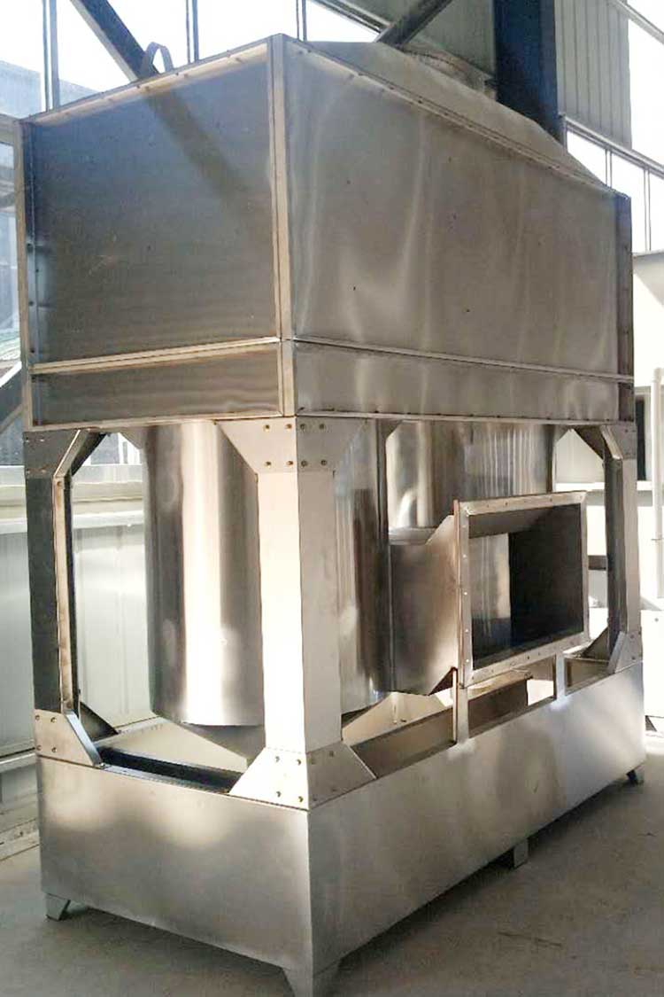 旋流塔內(nèi)安裝有多個(gè)“環(huán)形旋流筒”和高效除霧板。旋流桶內(nèi)裝有實(shí)心填料球,***上層的除霧板用于凈化水霧,達(dá)到脫水霧的目的,含塵氣體在塔板上旋轉(zhuǎn)上升,并與塔頂進(jìn)入的液體旋流接觸,完成了除塵任務(wù);廢氣中的大顆粒被離心力作用沉降到水池中,***后由人工撈出清洗機(jī)殼,使氣體被凈化,達(dá)標(biāo)排放,同時(shí)氣旋塔內(nèi)的水可持續(xù)循環(huán)。