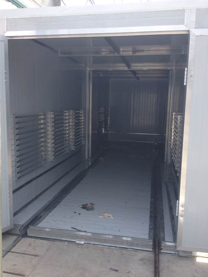 3)、室體結(jié)構(gòu):進(jìn)、出口設(shè)置風(fēng)幕,有效防止熱空氣外逸,減少熱量損失。室體內(nèi)壁板:δ1.2mm鍍鋅板。室體外壁板:≥δ0.4mm彩色瓦楞板或彩鋼板。室體骨架:采用方管等型材。